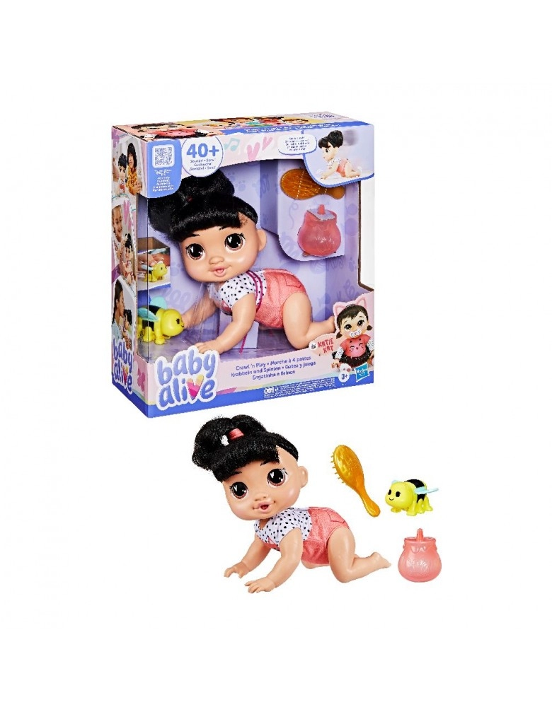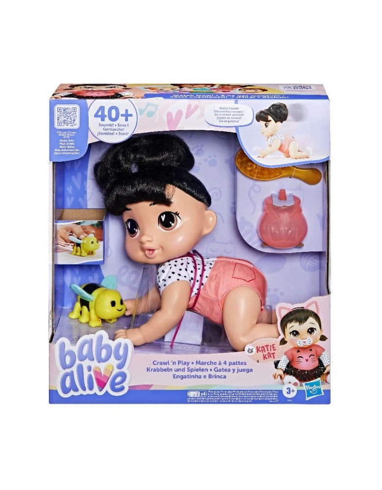 BRINQUEDOS>MENINAS>BABY ALIVE>BABY ALIVE ENGATINHA E BRINCA MORENA KATIE/F9710
