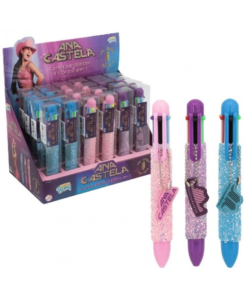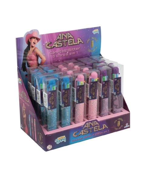 BRINQUEDOS>CANETA>DISPLAY C/ 24 CANETA GEL 10 EM 1 GLITTER ANA CASTELA/SCB-AC07