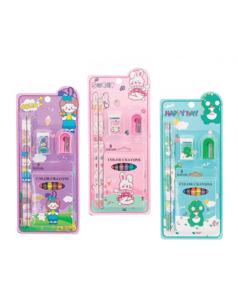 BRINQUEDOS>CANETA>KIT ESCOLAR COM GIZ DE CERA SORT./SCB65