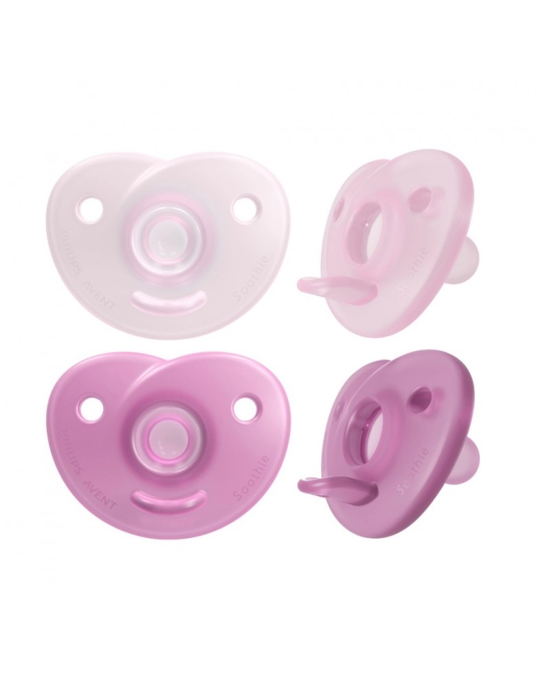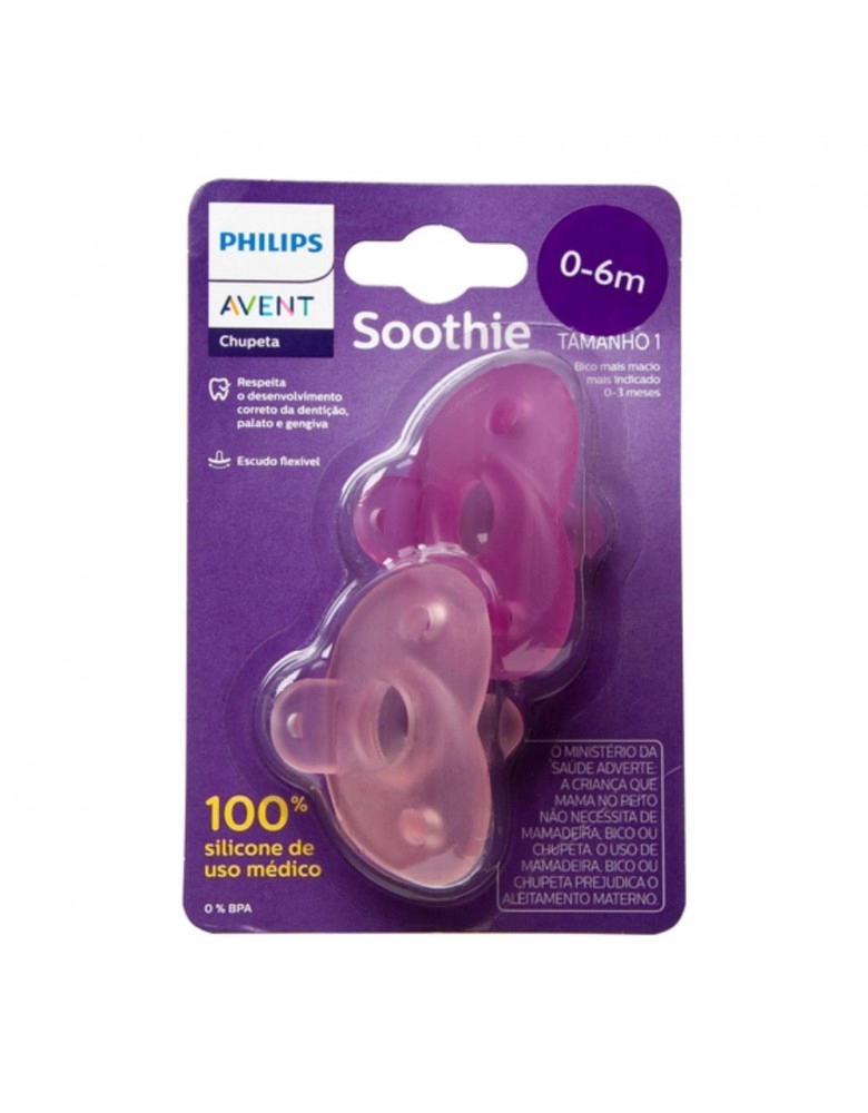 Chupeta Soothie Avent, 100% em silicone médico, escudo flexível, tornando mais confortável para o bebê, formato do bico que estimula e supri a sucção do bebê, tem uma abertura no escudo que a permite a mãe coloque o dedinho mindinho para massagear a boca do bebê. Indicado para recém nascidos.
