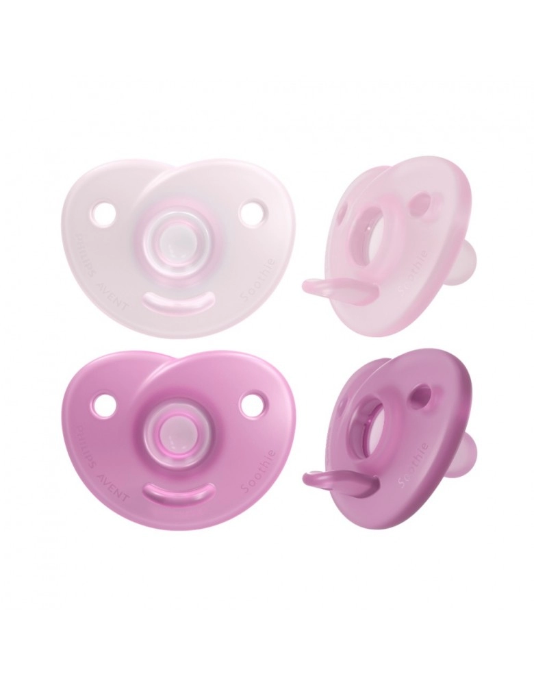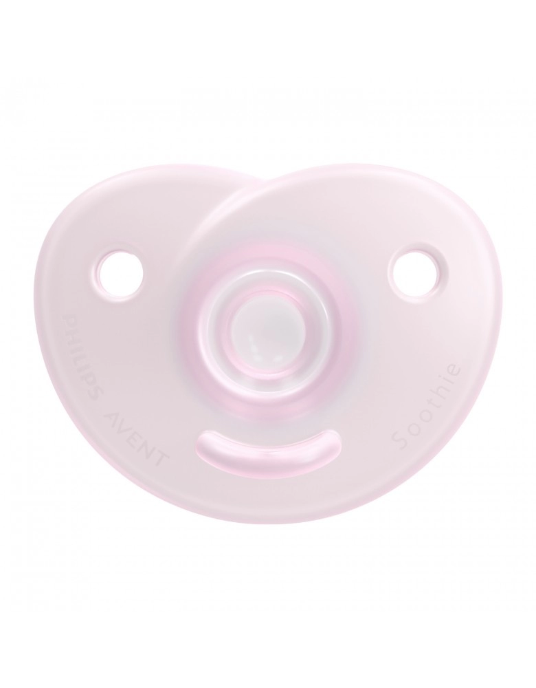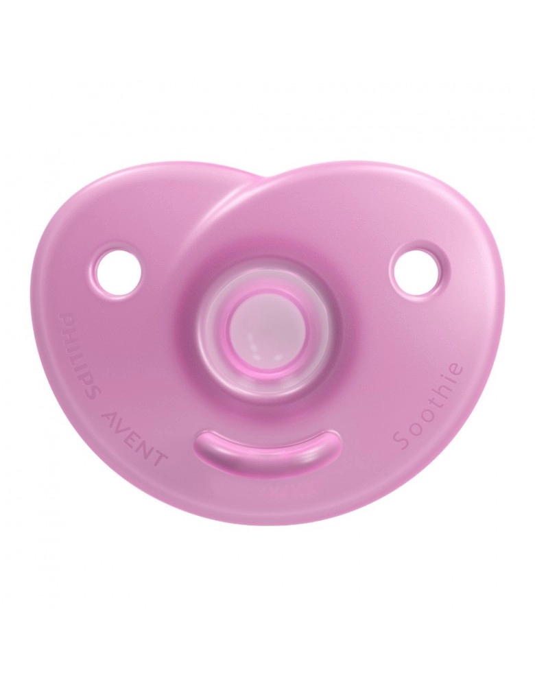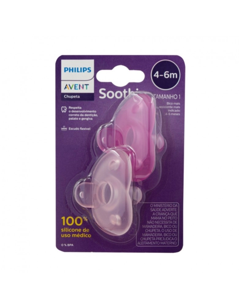 Chupeta Soothie Avent, 100% em silicone médico, escudo flexível, tornando mais confortável para o bebê, formato do bico que estimula e supri a sucção do bebê, tem uma abertura no escudo que a permite a mãe coloque o dedinho mindinho para massagear a boca do bebê. Indicado para recém nascidos.