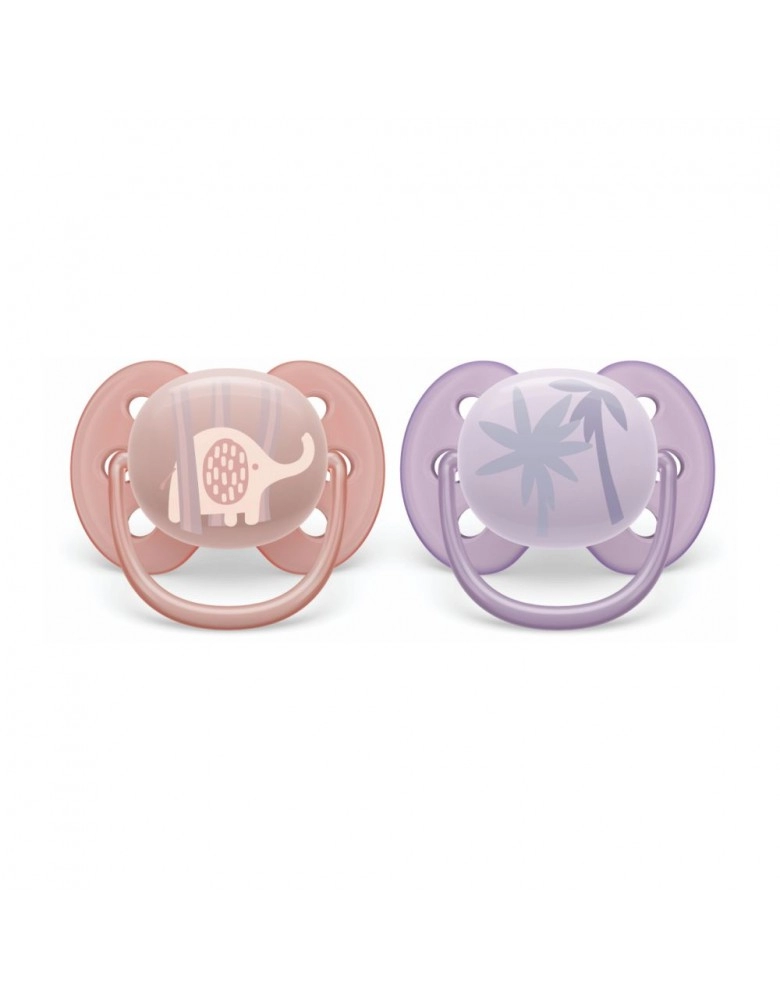PUERICULTURA>BEBE>CHUPETAS>CHUP ULTRA SOFT DUPLA DECORADA 0-6M SALMAO E LILAS/SCF091/09