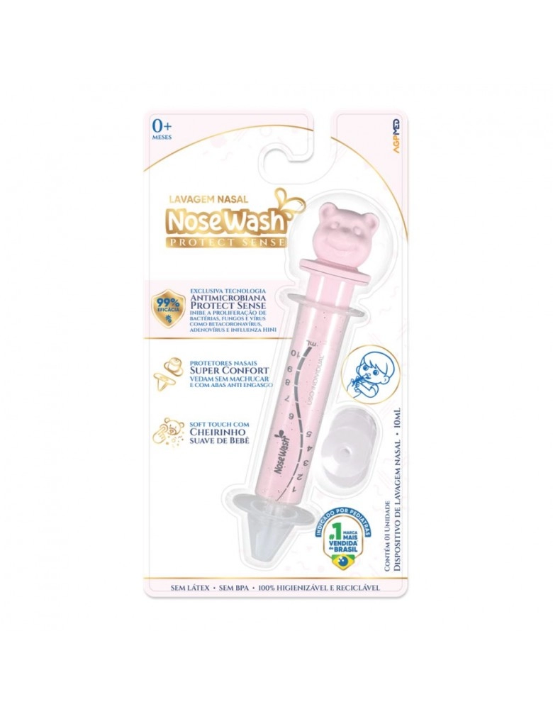 PUERICULTURA>DISPOSITIVO NASAL>BEBE>DISPOSITIVO P/LAVAGEM NASAL NOSEWASH PROTECT SENSE 10MML - URSO ROSA/NWPSRS01