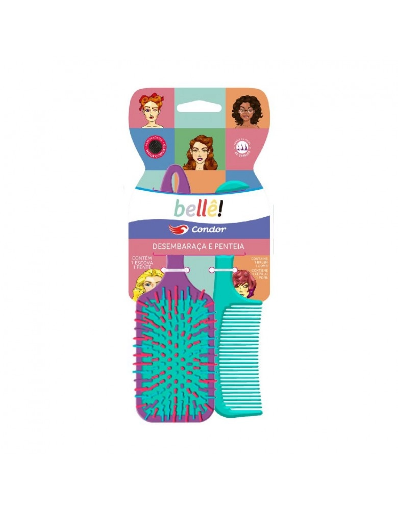 CUIDADOS PESSOAIS>BELEZA>ESCOVA DE CABELO>PACK BELLE ESCOVA RAQ CAB+PENTE 9730/973993