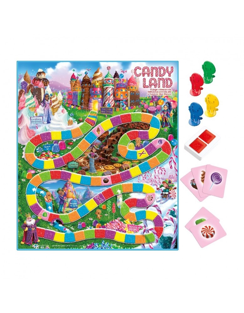 Participe dessa nova aventura de CANDY LAND, agora com novo formato, novas artes e novo tabuleiro! Não é preciso ler para jogar, apenas conhecer cores.