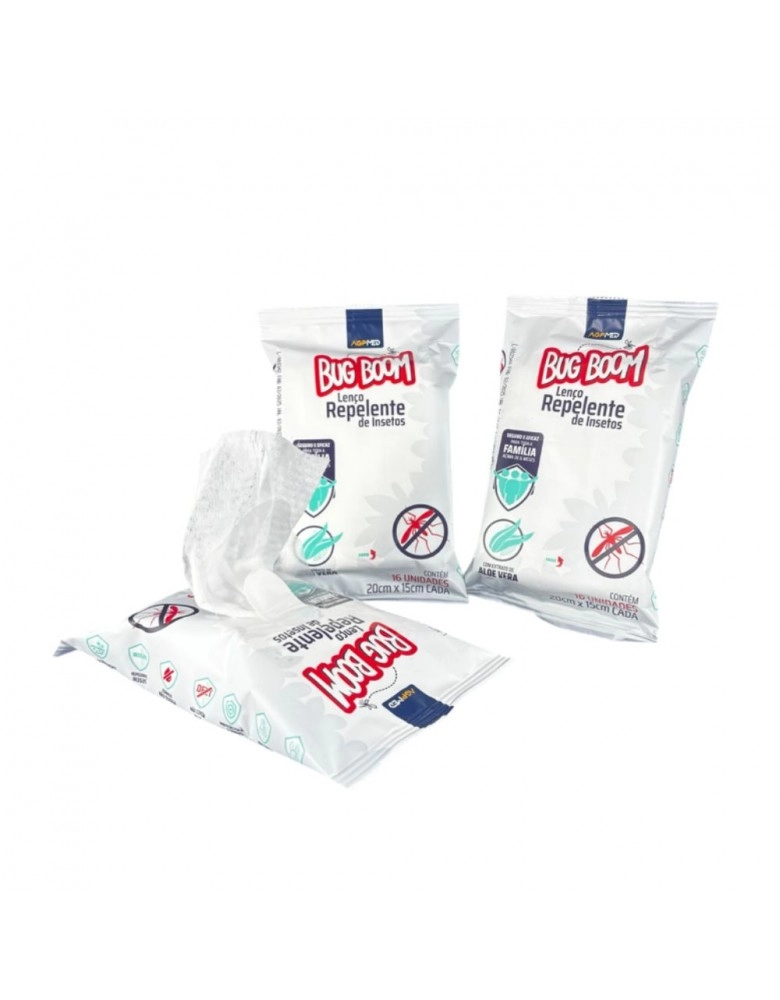CUIDADOS PESSOAIS>LENCO>LENÇO REPELENTE COM IR3535 BUG BOOM - PACOTE COM 16 LENÇOS/BBLR01