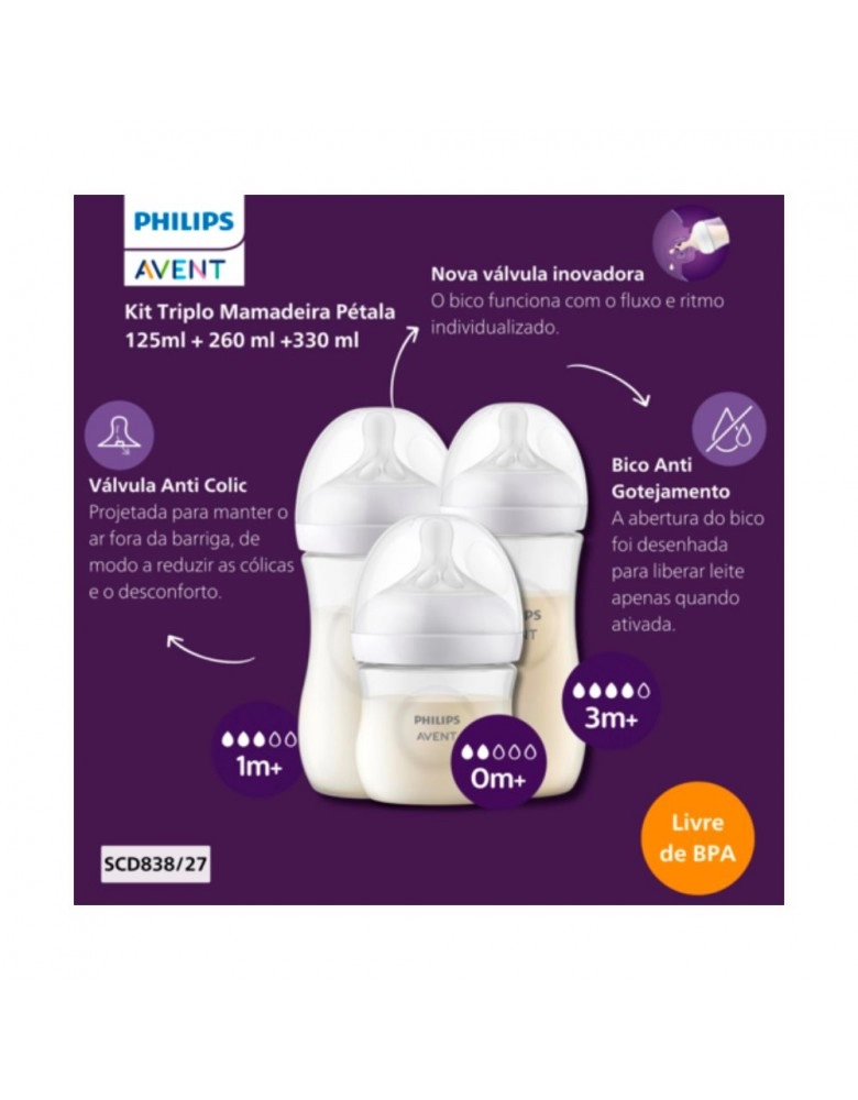 PUERICULTURA>BEBE>MAMADEIRAS>PACK MAMAD PETALA 3.0 125ML+260ML+330ML TRANSP/SCD838/27