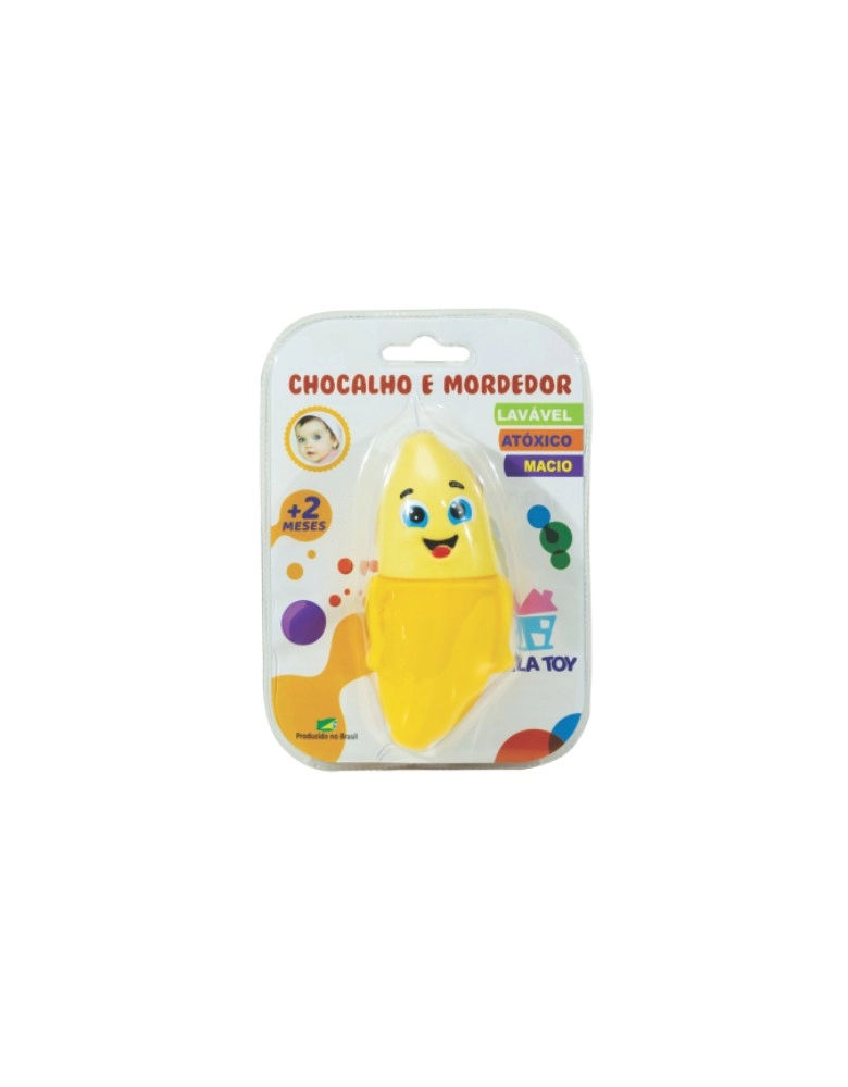 BRINQUEDOS>PRE-ESCOLAR>MORDEDOR>MORDEDOR E CHOCALHO BANANA/100-37