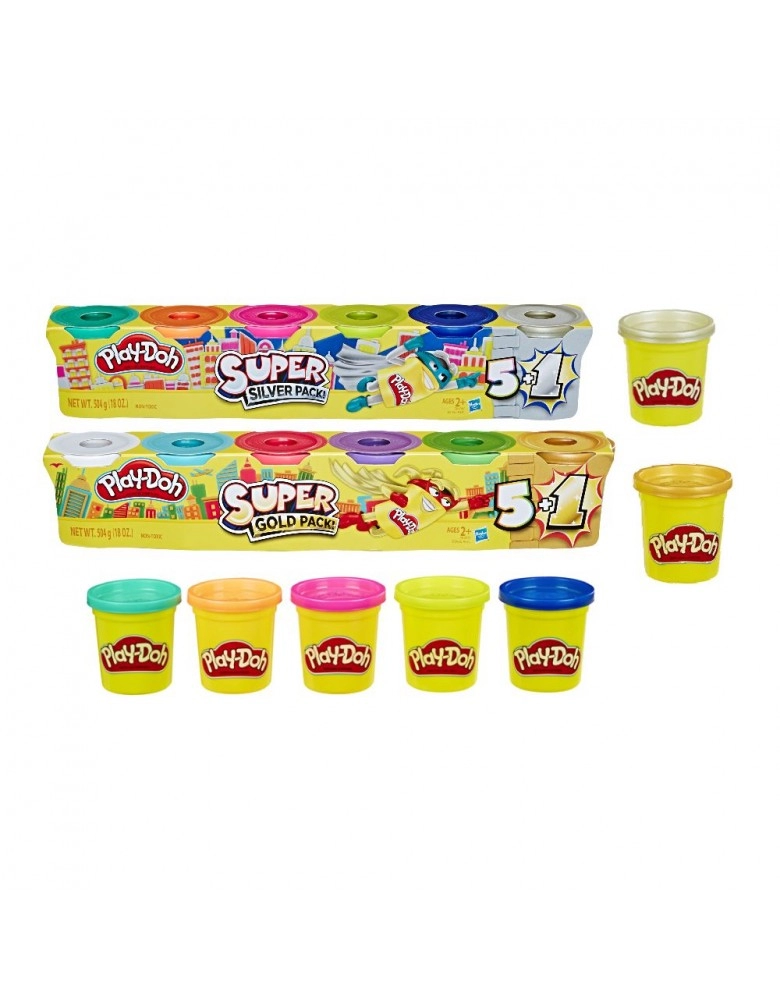 BRINQUEDOS>PRE-ESCOLAR>PLAY-DOH>PLAY-DOH 6 POTES SORT (SILVER OU GOLD)/G1740