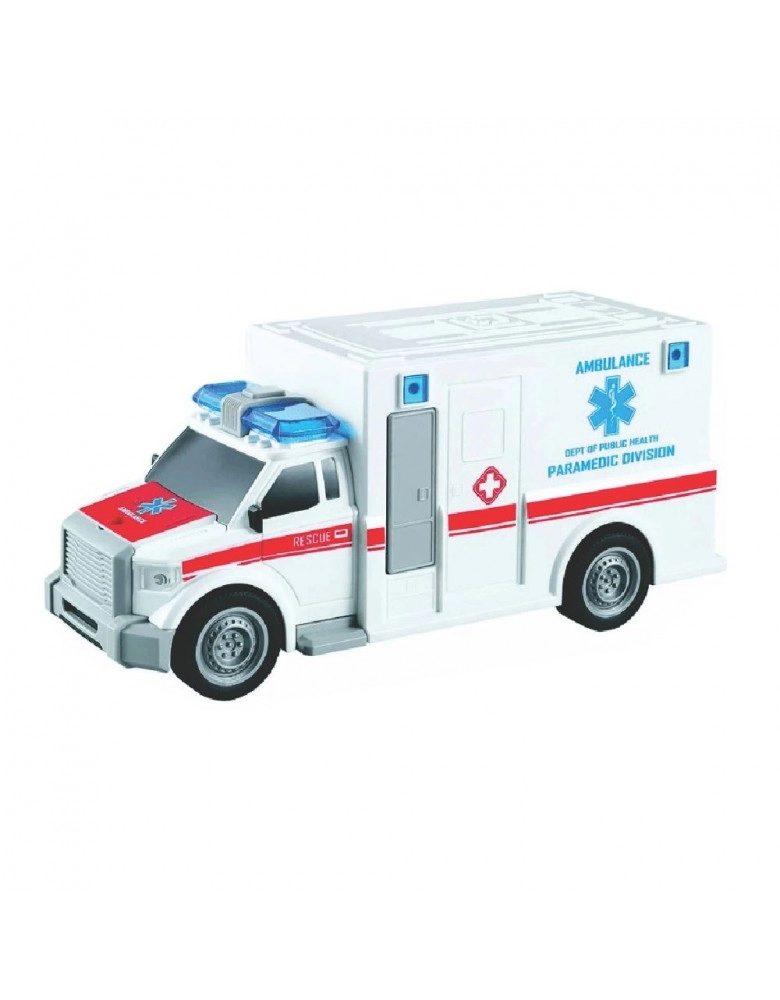 BRINQUEDOS>MENINOS>AMBULÂNCIA DE RESGATE C/ LUZ, SOM E FRICÇÃO 1:20/639