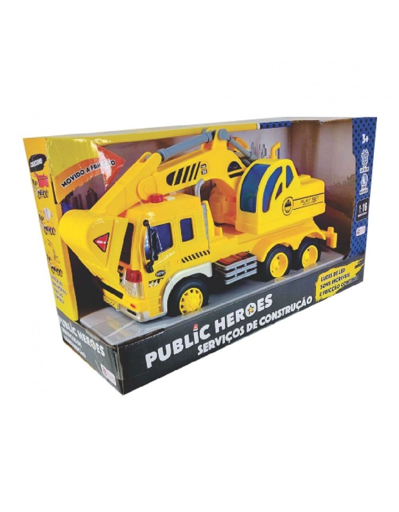 BRINQUEDOS>MENINOS>CAMINHÃO ESCAVADEIRA C/LUZ, SOM E FRICÇÃO 1:16/637